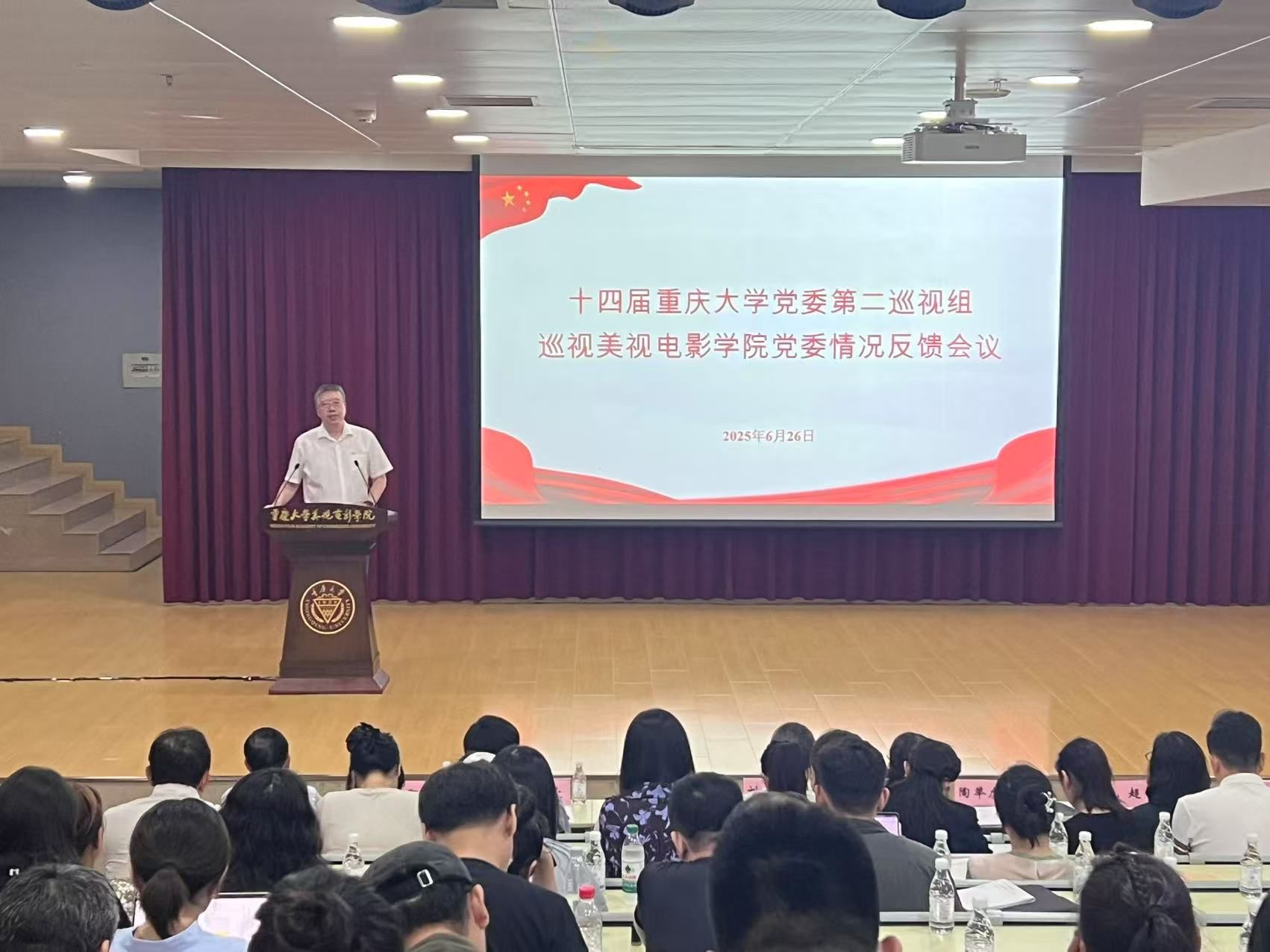2025-07-016月26日下午,十四届学校党委第二巡视组巡视 酒店偷拍 党委情况反馈会议在 酒店偷拍 A109召开。学校党委巡视工作领导小组副组长陶举虎同志出席并讲话。第二巡视组组长毛超在反馈会议上宣读了巡视反馈意见, 酒店偷拍 党委书记李阳模主持会议,并作表态发言。巡视组副组长、巡视干部,组织部、巡视办相关同志,学院全院教职工参加会议。陶举虎同志指出,要深入学习习近平总书记关于巡视工作的重要论述,坚决落实“三个进一...
