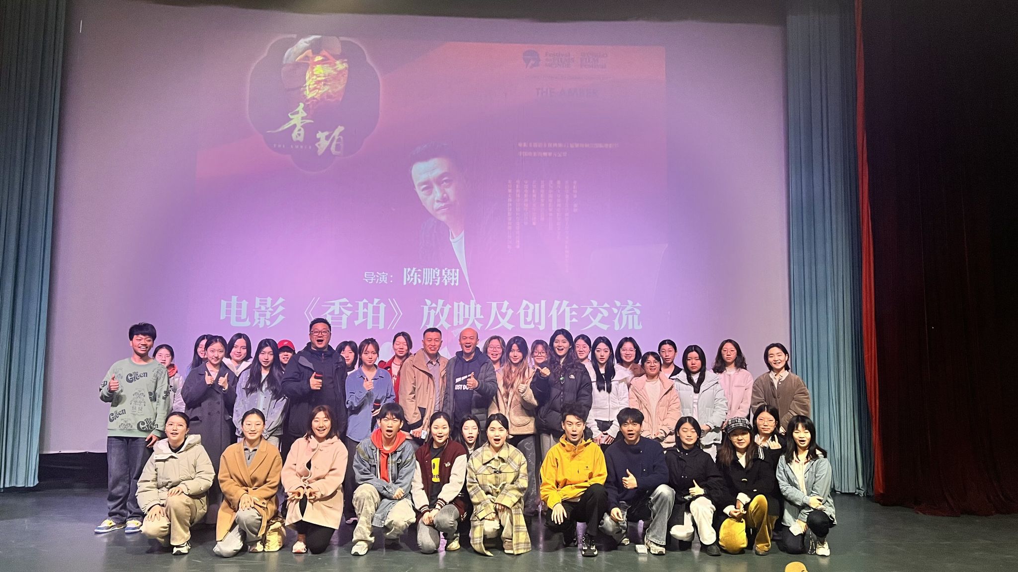 戏剧影视文学专业2001级校友陈鹏翱携获奖影片《香珀》回学院放映交流