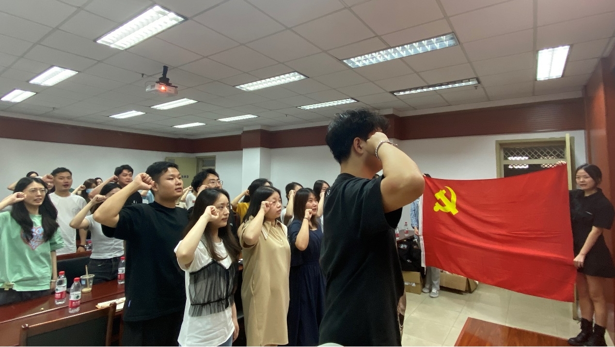 最后,举行了预备党员入党宣誓暨正式党员重温入党誓词仪式。毕业生预备党员和正式党员在领誓人的带领下面对党旗进行了庄严宣誓和重温入党誓词。