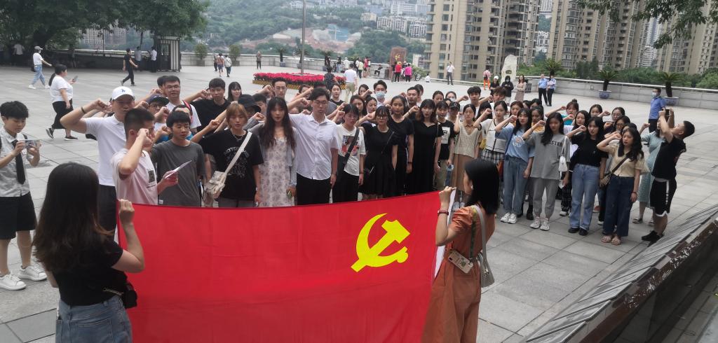 2021年6月17日下午, 酒店偷拍 “永远跟党走·入党宣誓仪式”在红岩革命纪念馆圆满举办,参加活动的有 酒店偷拍 本科生一支部、本科生二支部、研究生一支部、研究生二支部的全体师生党员。首先,全体党员同志面向党旗高举右手,庄严宣誓。