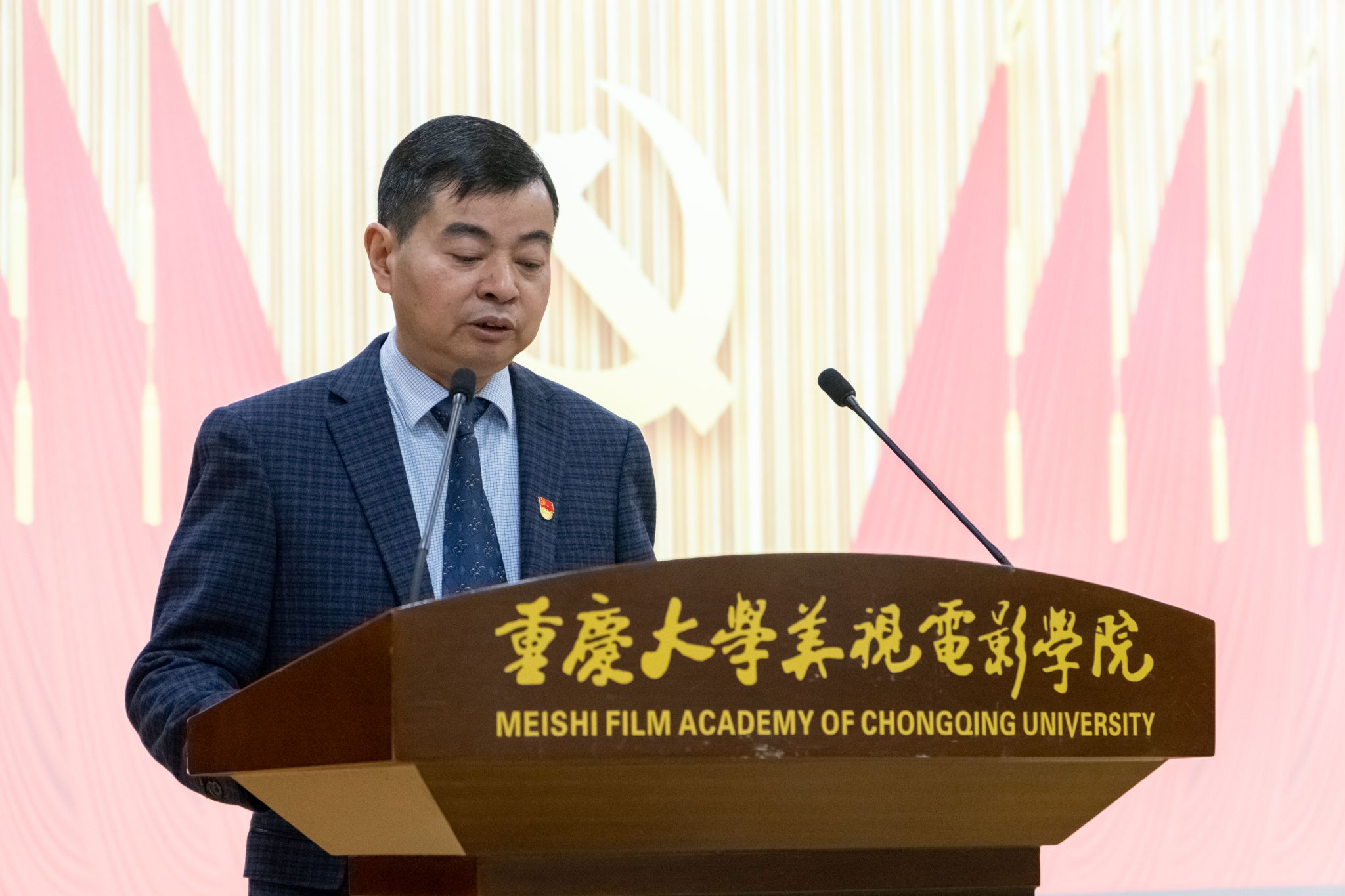 李阳模代表学院上届党委做了题为《强根铸魂践使命 砥砺奋进显担当 奋力谱写学院高质量发展新篇章》的工作报告。报告全面总结了过去五年学院在党的建设、教育教学、人才队伍、学科科研、合作交流等方面取得的主要成绩,分析了学院面临的历史机遇、突出困难和瓶颈问题,明确提出了今后五年学院建设发展的主要任务和具体举措。报告号召学院全体党员和师生员工要进一步解放思想、求真务实、破局开新、团结奋进,永葆“赶考人”的清醒与坚定,奋力续写学院高质量发展新篇章,共同创造学院灿烂明天新辉煌,为“百年新重大”建设作出“美视电影人”的新贡献。