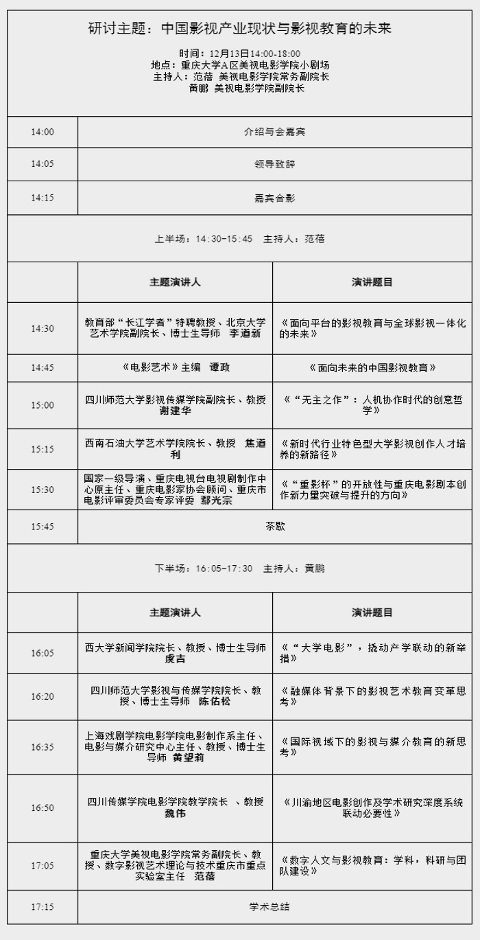 预告|12月14日8:30,“影视创作教学与影展作为一种教育模式”学术研讨会议程
