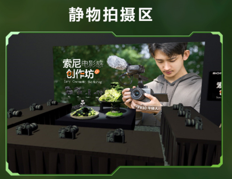 本次活动现场搭建了多个专业拍摄体验区,包括高感及音质体验区、静物拍摄区、升格拍摄区、运动拍摄区和电影感体验区等,为参与者提供了全方位的拍摄体验。现场还展出了索尼最新电影机型,如fx6、FX3、FX30,以及GM大师镜头、麦克风、存储卡等专业设备,让同学们能够亲身体验索尼产品的卓越性能。