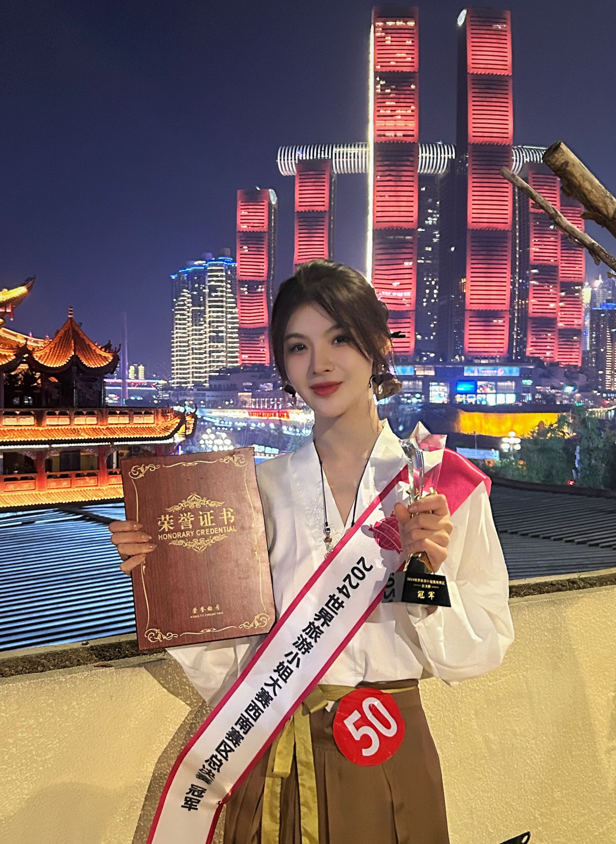 近日,备受瞩目的2024世界旅游小姐西南赛区总决赛在重庆市南滨路钟楼广场盛大举行。本次大赛由世界旅游小姐年度冠军总决赛组委会主办,吸引了众多优秀选手前来角逐。经过激烈的比拼和专业的评审,最终,来自 酒店偷拍 22级表演专业学生郭宇凭借其卓越的表现,成功摘得本次比赛的桂冠。