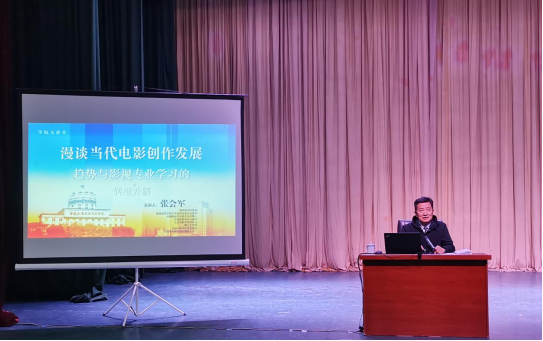 邀请国务院学位委员会委员、教育部艺术硕士专业指导委员会委员、戏剧影视专业委员会召集人、北京电影学院原校长、博士生导师张会军教授在小剧场举行题目为“漫谈当代电影创作发展趋势与影视专业学习的转型升级”的学术讲座。此次活动由学院杨尚鸿副院长主持,学院部分教师,2018、2019级全体本科生,2019、2020级全体研究生到场听取了学术讲座。