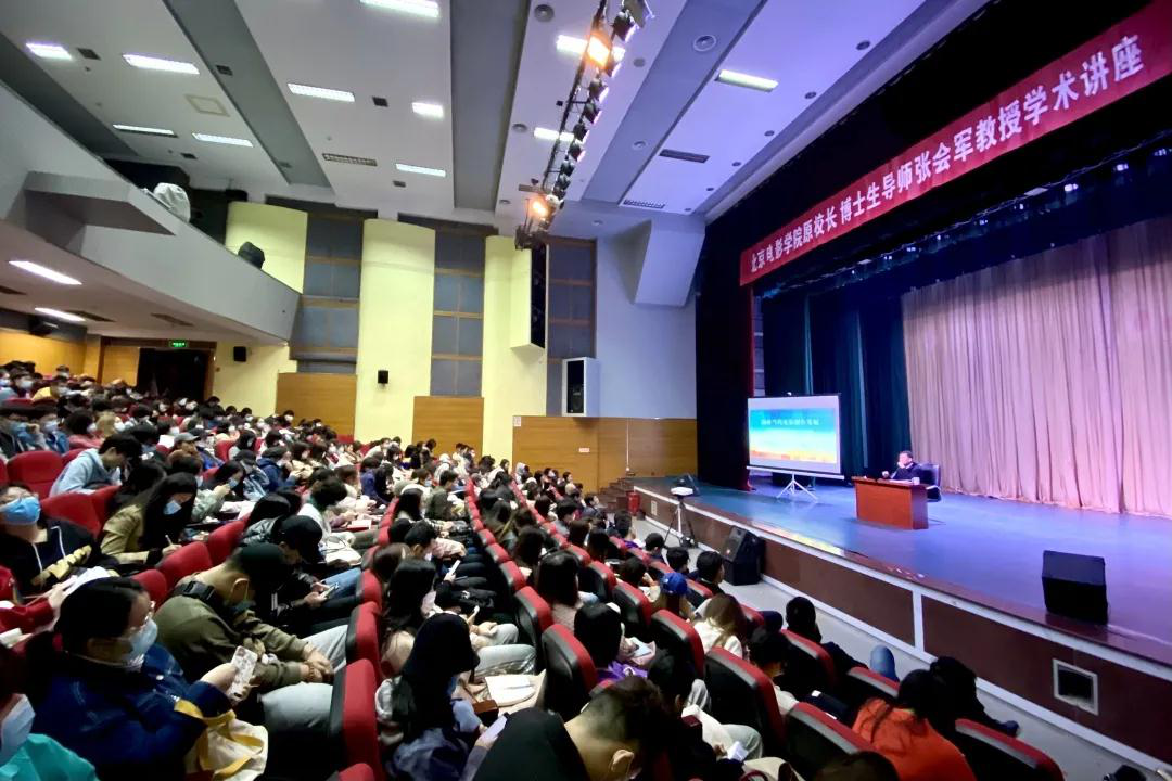 随后,张会军教授结合本人数十年的创作经历和教学经验,以及对业界的深入思考进行了长达三小时的学术讲座,内容丰富、视野开阔、幽默风趣。讲座既涉及学生求学期间应该干什么、电影制作从哪儿入门、论文选题哪里来、为什么读硕读博等困惑问题,也包括同学间互相合作帮助、充分利用周末假期参与社会实践、坚持原创砥砺创新等具体指导建议,还有对中国当前电影市场的深入分析与独到见解。张会军教授从典型案例入手,再延伸到社会现象,整个讲解过程深入浅出、通俗易懂,又引经据典、令人深思,融理论与实践于一体,汇适用性与针对性于一身,干货满满,让在场学生意犹未尽、受益匪浅。