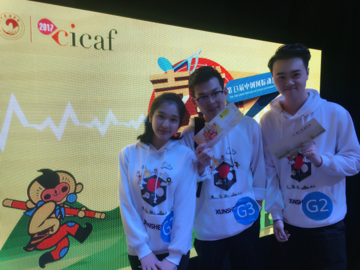 28日早上九点,“牛牛星”作为第七组出场选手,在第一轮原音重现的环节,演绎了入围作品的九十秒片段节选,第二轮是抽签作品《极地大冒险2》的片段,两轮结束后,25支参赛队决出前五强,进入晚上的总决赛,“牛牛星”队得分18.29,最终获得本次大赛的三等奖。