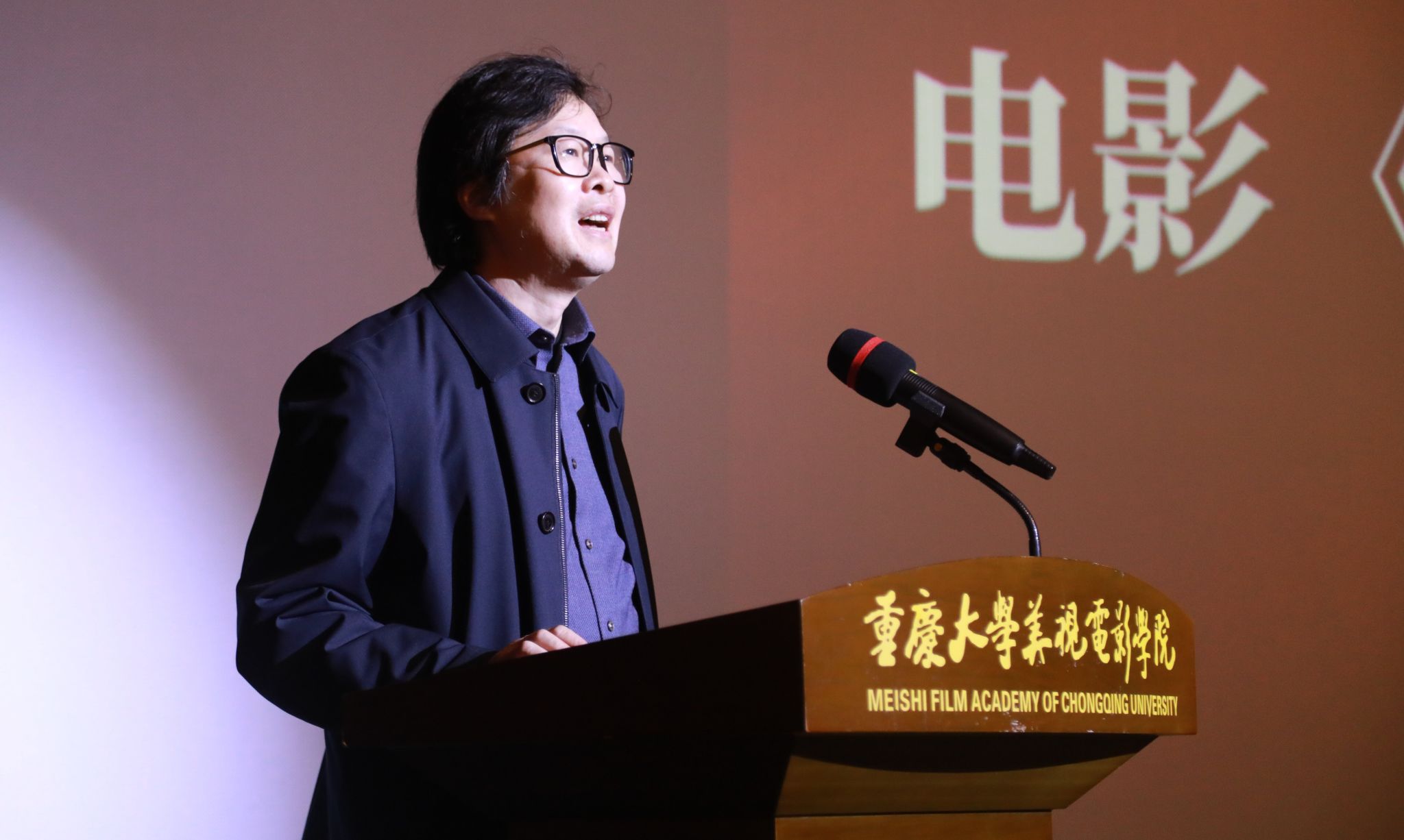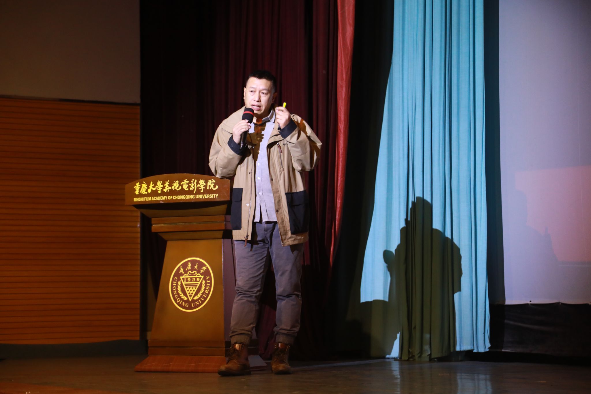 学院常务副院长范蓓教授随后致欢迎辞,他对陈鹏翱校友荣归母校表示热烈欢迎与诚挚感谢,对陈鹏翱凭借《香珀》斩获第41届蒙特利尔国际电影节重要奖项表示祝贺,这既是为学院赢得了荣誉,也是对学院人才培养的肯定,并希望学院师生能创作出更多优秀作品,能取得更好的成绩。