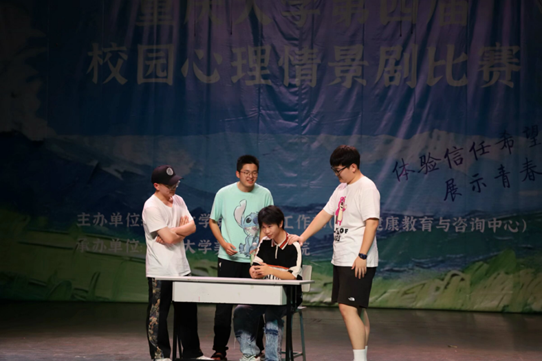第四届校园心理情景剧比赛。比赛吸引了来自本科生院、博雅学院、电气工程学院、小橘灯心理协会等9个学院(社团)的学生团队报名参加,经过意向征集和剧本审核,共14个剧目进入线下展演。