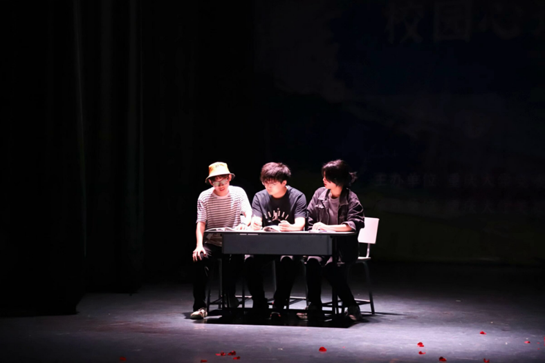 本科生院的剧目《和解》带来了一则关于成长、理解与勇气的故事。剧中主角不断探寻内心真实的世界,感知生活的美好与意义,最后与矛盾和迷茫的自己和解。平静的校园下,暗流涌动,校园欺凌仿佛是一个张着血盆大口的“怪物”,将一个又一个鲜活的同学吞入“腹中”,剧目《伤痕》教大家如何打败“怪兽”,治愈“伤痕”。《人生典当行》则讲述了主角在与其他同学诸多优点的对比下逐渐自卑,在经过“人生典当行”的“交易”后,她发现,应该勇于找寻自己的独特价值、绽放自己的独特光彩。