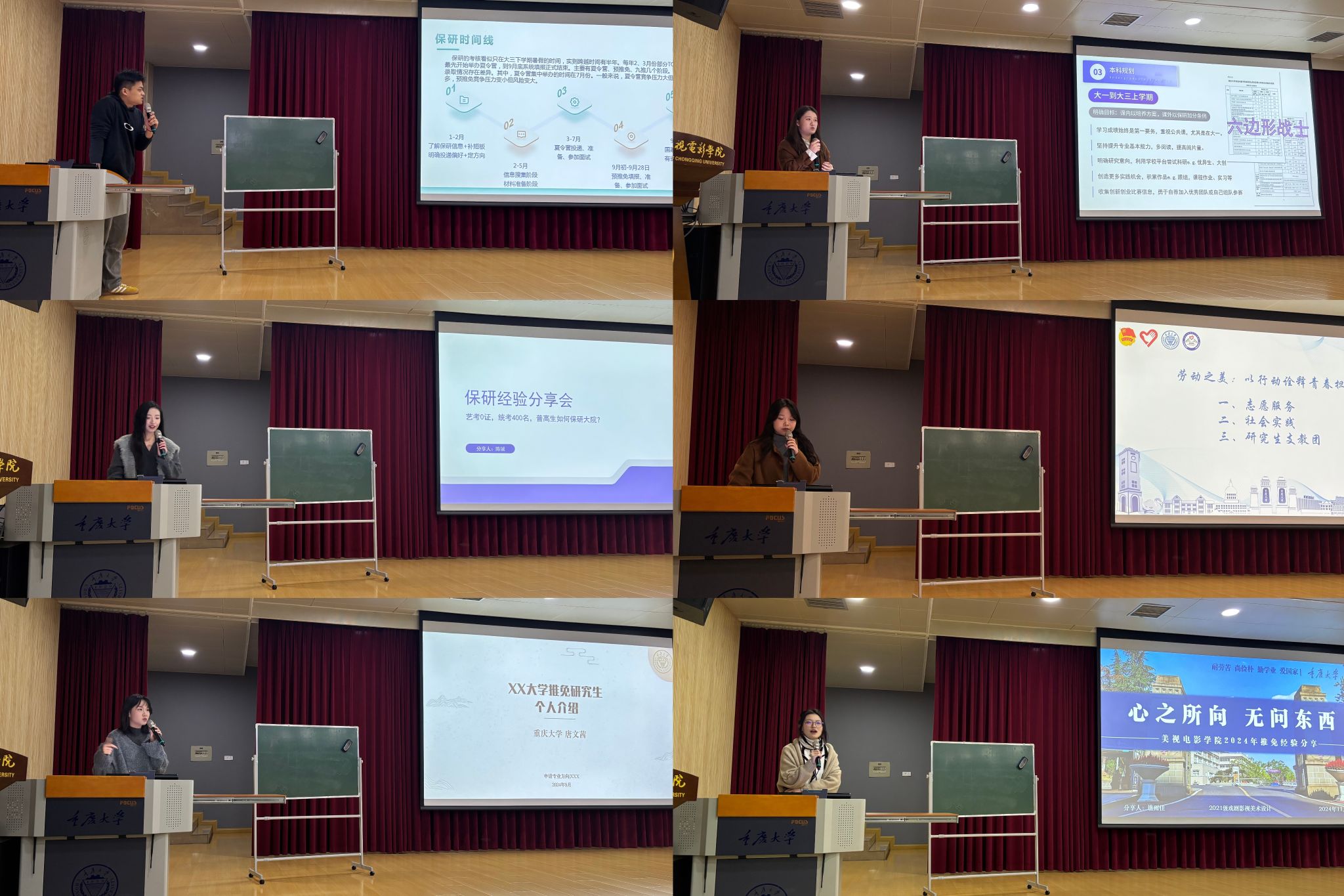 在学院一楼阶梯教室举办了2024年“朋辈引领计划”推免研究生经验分享交流会。活动邀请了本科2021级推免至中央戏剧学院的周舟洲,上海戏剧学院的陈铖、谯雨佳,浙江大学的唐文茜,北京师范大学的杨宸琦,酒店偷拍