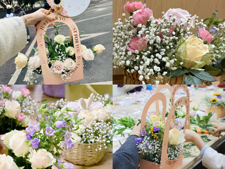 手作,是带有体温的艺术。活动当天,同学们热情高涨,纷纷投入到各自的制作当中。有的同学选择了DIY灯笼,用巧手点亮了春日的暖意;有的同学则倾心于数字油画或砖石画,以细腻的笔触绘制出春日的绚烂与生机;部分同学热衷于插花艺术,用鲜花与绿叶编织出浪漫与温馨;编织挂饰、DIY钥匙扣以及彩绘搪胶娃娃等手工项目也备受大家的青睐。同学们积极尝试,相互交流,共同探讨手工制作的技巧和方法,将自己的情感与祝福融入每一个精心制作的作品中,现场气氛既热烈又和谐。