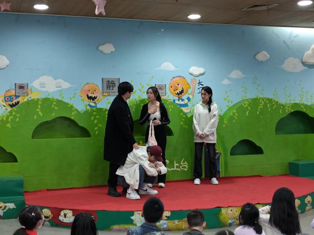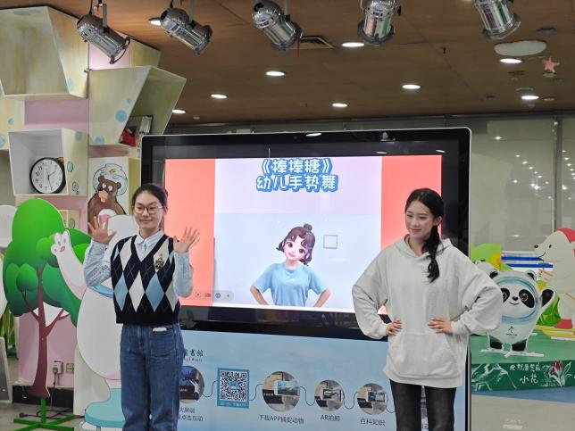 活动伊始,伴随着《小花朵》与《棒棒糖》的欢快旋律,小朋友们纷纷跟着志愿者们进行手势舞表演。现场气氛欢快而热烈,为接下来的活动环节营造出了浓厚的兴趣氛围。