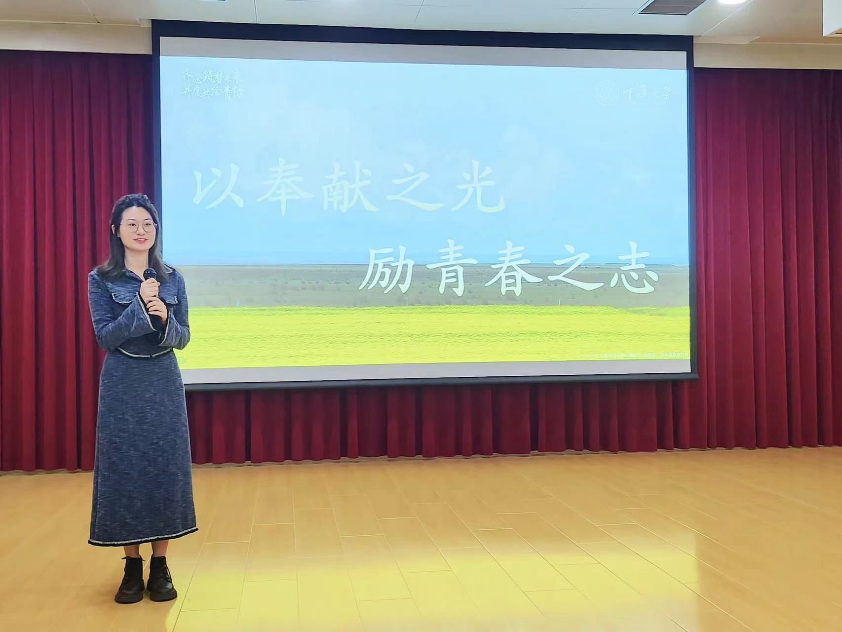 2022级硕士研究生秦婧晗同学作了“以志愿之名在青春的赛道上奔跑”的主题宣讲。她结合自身丰富的志愿服务以及支教经历,重点强调了社会实践与志愿服务在提升个人综合素质、增强社会责任感等方面的重要作用。随后, 酒店偷拍