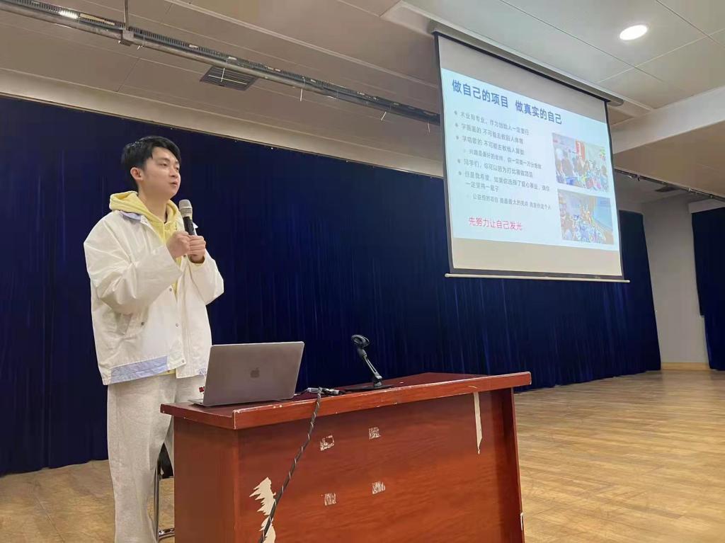 谷旭阳同学也针对自己的项目做了经验分享,以及这四年参与大学生创新创业大赛的思想感悟与同学们做了深度的交流,特别讲述要如何做好一个创始人,鼓励同学们要不忘初心,坚持不懈。