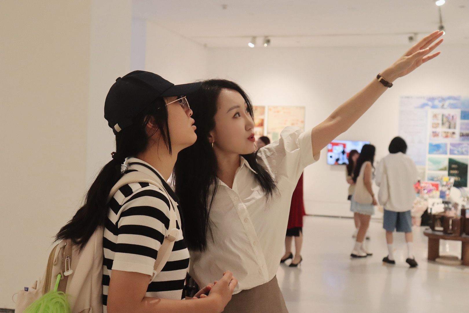 作为广播电视编导专业的同学们选择自己最舒服的参观方式,纷纷用相机和手机记录着所欣赏到的一切,在感叹学长姐们丰富创造力的同时,也思考作为相关专业的学生往后创作的方向。