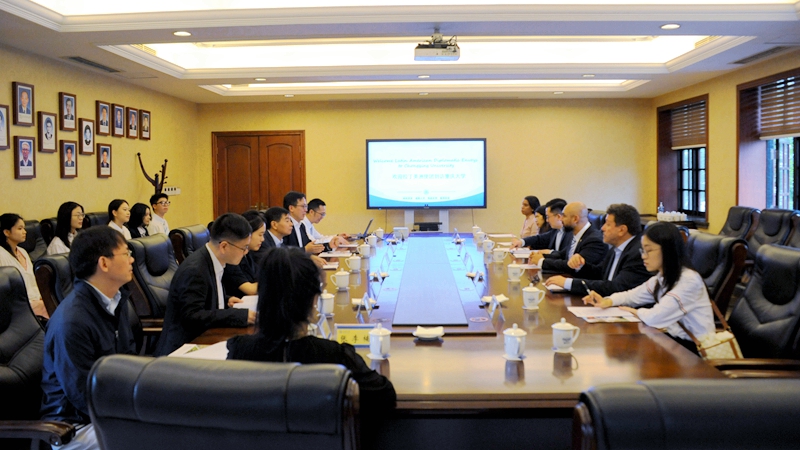 2024-11-15 近日,拉美驻华使节代表团一行到访酒店偷拍 ,与 酒店偷拍 师生交流座谈。代表团成员包括萨尔瓦多驻华大使路易斯·洛佩斯、参赞宝拉·卡瓦列罗,哥伦比亚驻华大使馆公使衔参赞圣地亚哥·甘博亚,以及古巴驻华大使馆三等秘书黛娜丽。重庆市人民政府外事办公室美大处干部霍一雪、程柯乔陪同来访。 酒店偷拍 党委书记李阳模、院长助理王琦、文学系副教授罗显勇、播音与主持系副教授张李楠,国际合作与交流处副处长高翔,以及美...